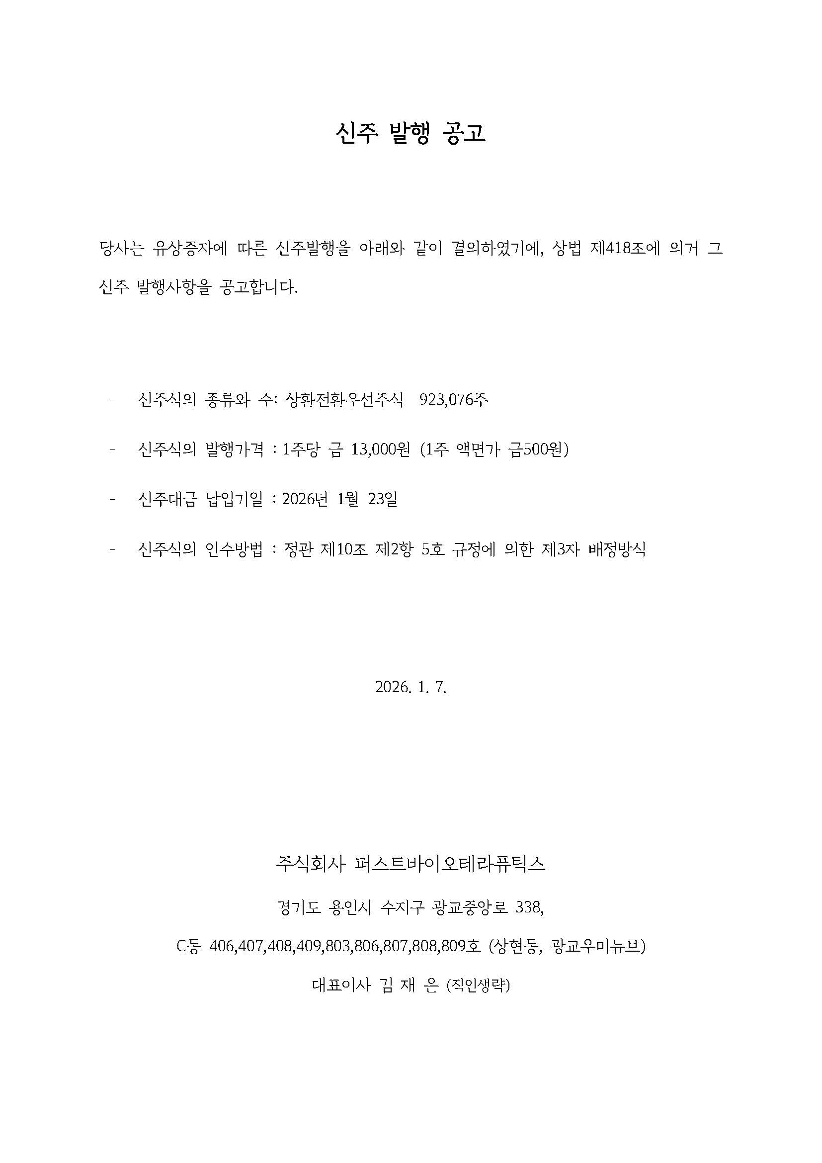신주발행공고